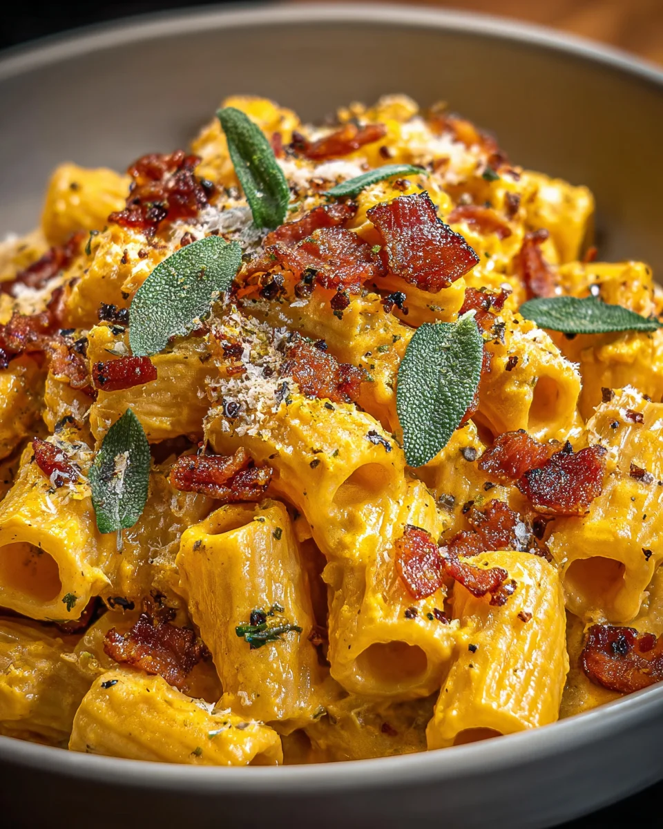 A quick and creamy pasta dish featuring pumpkin and sage, perfect for a cozy meal in just 5 minutes.