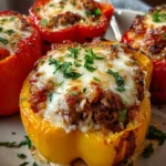 Lastly, pour a bit of water or chicken broth into the bottom of your baking dish. This helps steam the peppers while they bake, keeping them tender. Cover the dish loosely with aluminum foil and place it in the oven. Bake for 30 minutes. Once that time is up, remove the foil and sprinkle the remaining mozzarella cheese on top. Pop them back in for another 10 minutes. You want the cheese bubbling and golden, while the peppers are perfectly tender. Let them cool for a few minutes before serving and enjoy the aroma that fills your kitchen!