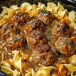 Cook on HIGH, stirring every 15 to 20 minutes until the noodles are tender and glistening. Each bite will be a delightful harmony of meatballs and noodles, all drenched in that warm, luscious gravy. It’s comfort food at its finest!
