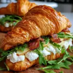 Grab the bottom halves of the croissants, and spread that dreamy cheese mixture evenly over them. Next, layer up thin apple slices on top. If you’re feeling fancy, toss on some fresh arugula for that peppery zing! Finally, place the top halves back on, and voilà, your adorable sandwiches are ready to bake.