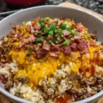 Hey there, fellow home cooks! If you’re on the hunt for a meal that blends ease, comfort, and deliciousness, look no further than my Bacon Cheeseburger Rice Skillet. This dish is like a warm hug on a plate, capturing the classic flavors of a cheeseburger in a charming, one-pan format. As a busy mom, I understand how hectic life can be. This quick and satisfying recipe is the perfect solution for those evenings when you need to whip up something special but don’t have the time. It’s also a fantastic way to impress your loved ones!