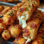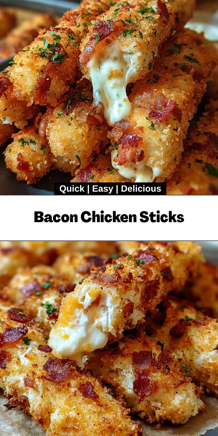 Bacon Chicken Sticks are a delicious snack or appetizer made by wrapping mozzarella sticks in a mixture of shredded chicken, bacon, and cheese, then baking them until golden and crispy.