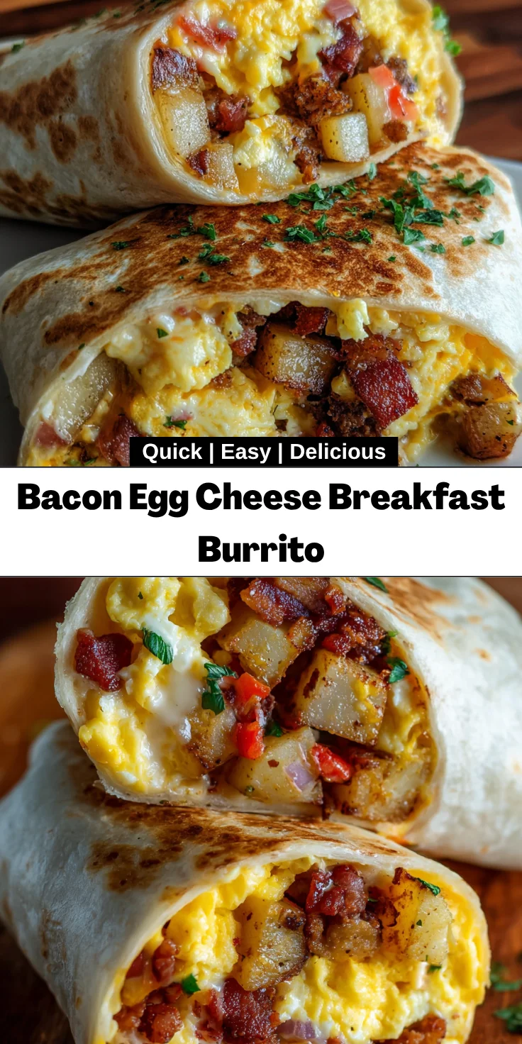 There’s nothing quite like a Bacon Egg Cheese Breakfast Burrito to kickstart your day! As a busy mom myself, I often find mornings chaotic. Yet, this burrito is my secret weapon for those on-the-go days. It’s quick, delicious, and packed with everything you love. The blend of fluffy eggs, crispy bacon, and cheesy goodness is truly a hug in a tortilla! Whether you’re feeding a crowd or just yourself, this recipe has you covered. It’s perfect for breakfast, brunch, or even a late-night snack. Now, let’s dive into making this delightful dish!