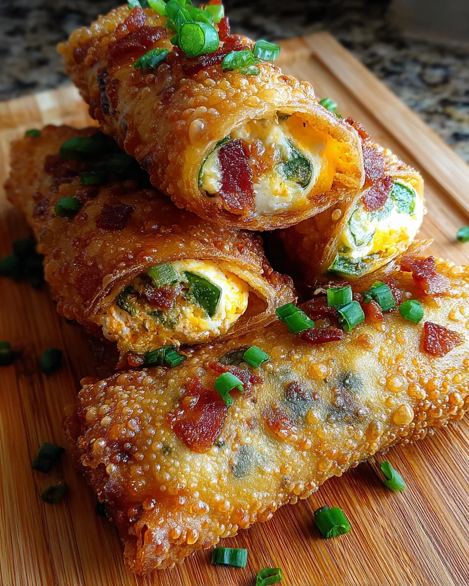 Delicious and crispy eggrolls filled with a creamy mixture of cheese, bacon, and jalapeños, perfect for a snack or party appetizer.