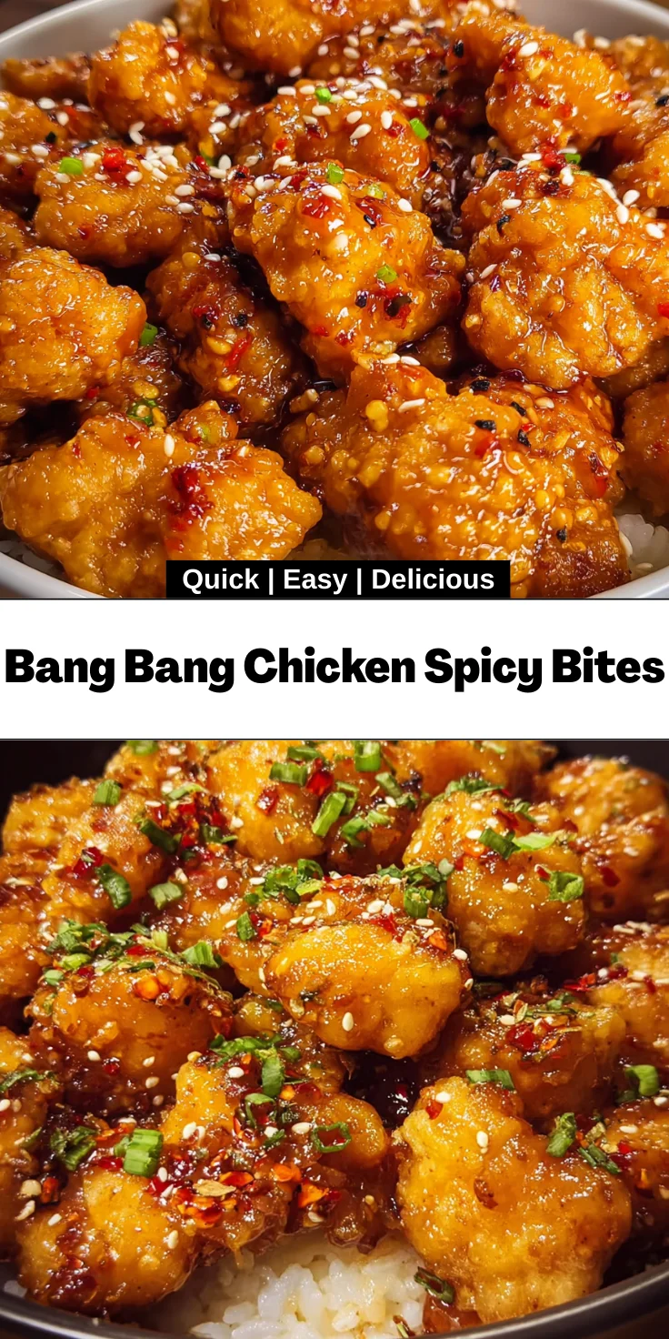 For an extra touch, serve your Bang Bang Chicken Spicy Bites over hot steamed rice, and finish it off with a sprinkle of sliced green onions or chives. Enjoy your culinary triumph!