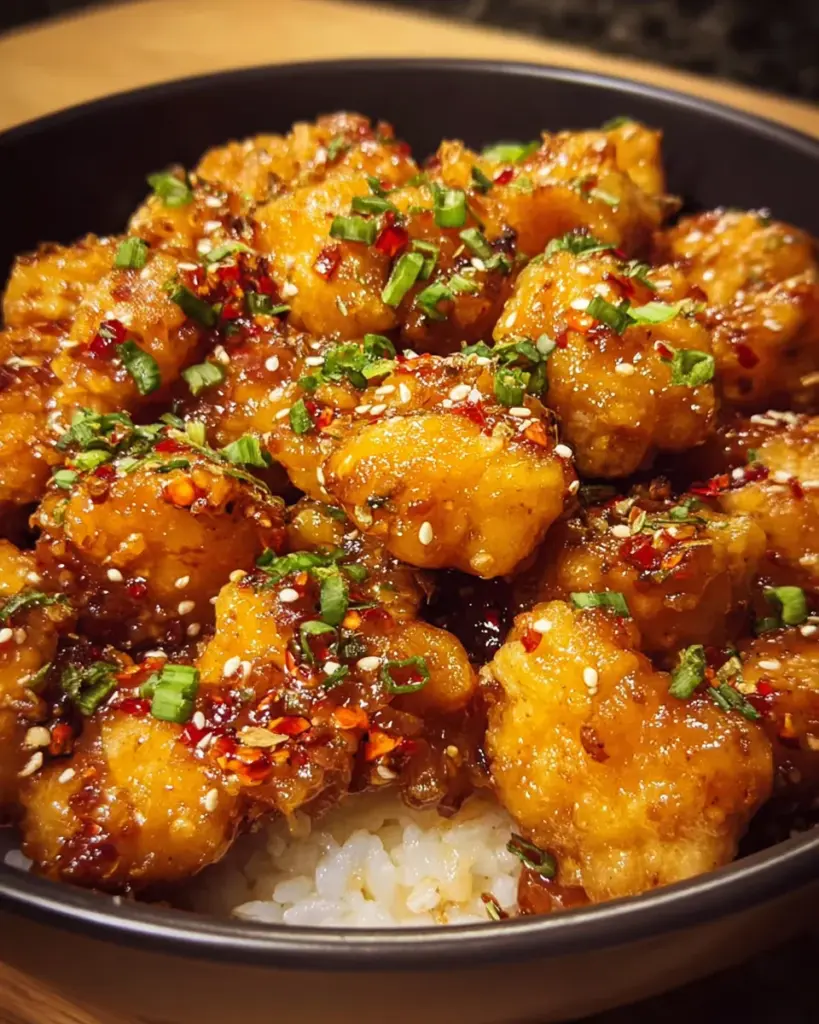 Bang Bang Chicken Spicy Bites are deliciously crispy fried chicken pieces coated in a spicy, sweet sauce that will tantalize your taste buds.