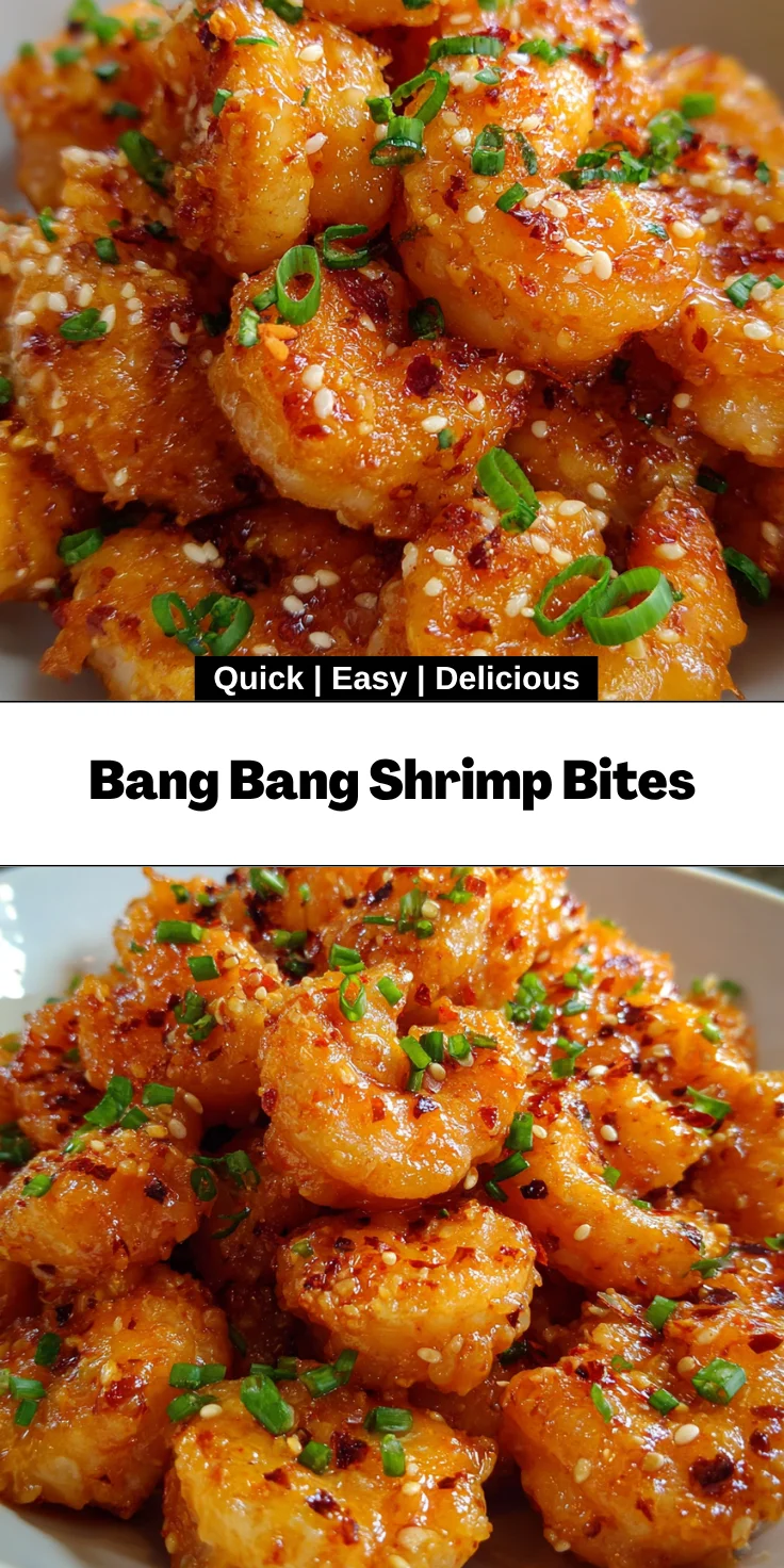 Bang Bang Shrimp Bites are a delicious and crispy appetizer, perfect for seafood lovers and party gatherings. They feature tender shrimp coated in a savory batter and tossed in a flavorful sauce.