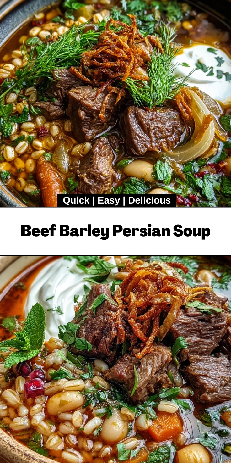 There’s a special kind of joy that comes from serving a steaming bowl of Beef Barley Persian Soup to your loved ones. It’s not just a meal; it’s a celebration of flavors and warmth. Whether it’s a family gathering or a simple weeknight dinner, this comforting soup charms everyone at the table. As you watch the smiles unfold with each spoonful, you’ll know you’ve created something truly special. This recipe invites you to savor every moment and makes them memorable—one delicious bite at a time. Embrace the joy of cooking and let this soup be a warm embrace in your kitchen!