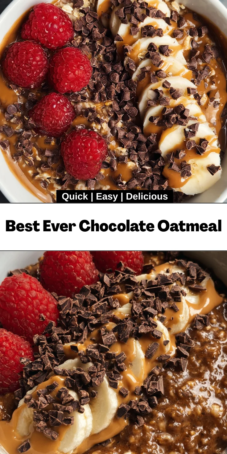 The Best Ever Chocolate Oatmeal isn’t just a meal; it’s a morning celebration! Each bowl is a canvas for creativity, allowing you to mix flavors, textures, and personal touches. Whether you’re racing against the clock or enjoying a leisurely weekend breakfast, this recipe adapts to your pace. As the rich cocoa envelops your taste buds, you can feel those busy-day stresses melt away. Plus, it nourishes both the body and the soul, creating a warm hug right when you need it most. Join me in making this breakfast a delightful part of your mornings!