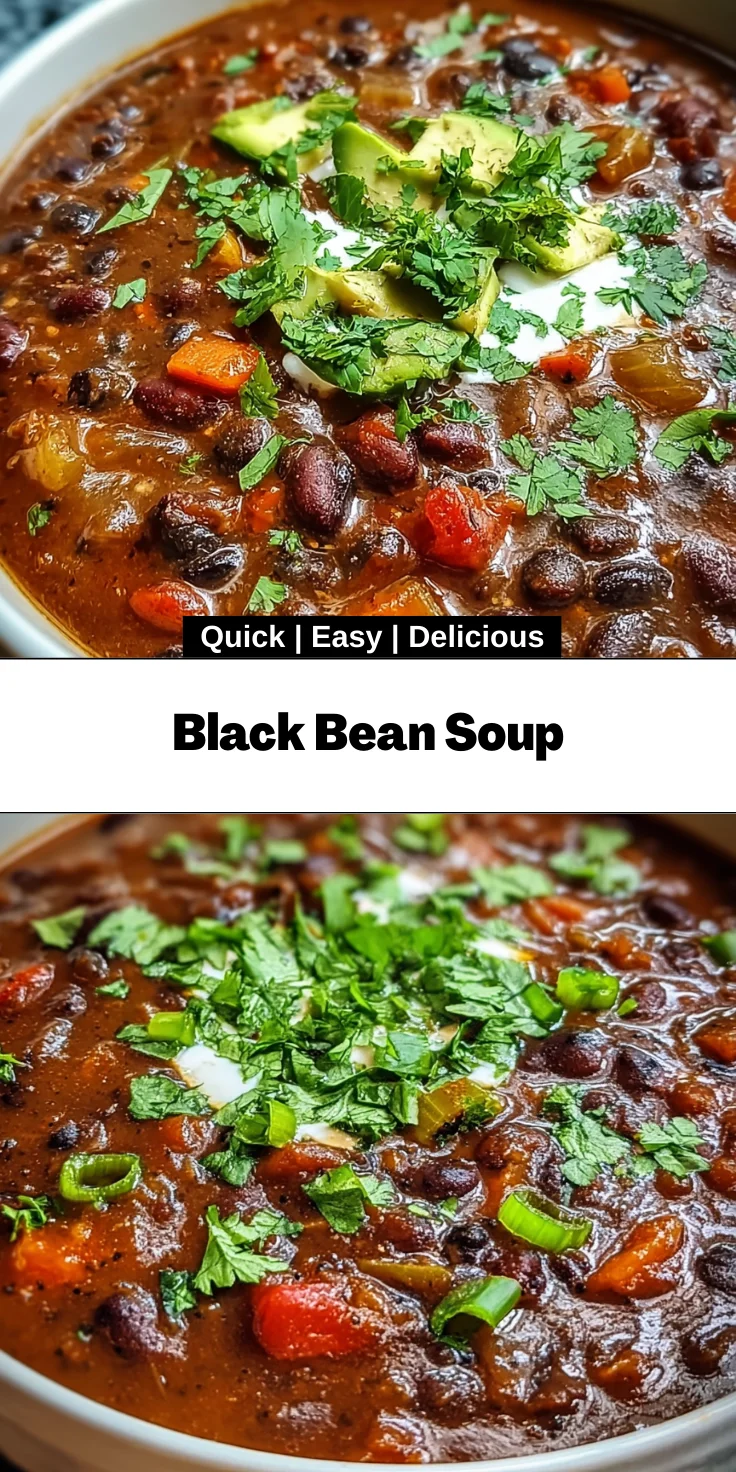 A rich and flavorful Black Bean Soup that combines beans, vegetables, and spices for a hearty meal.