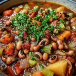 A comforting and flavorful Black-Eyed Pea Stew infused with aromatic vegetables and herbs.