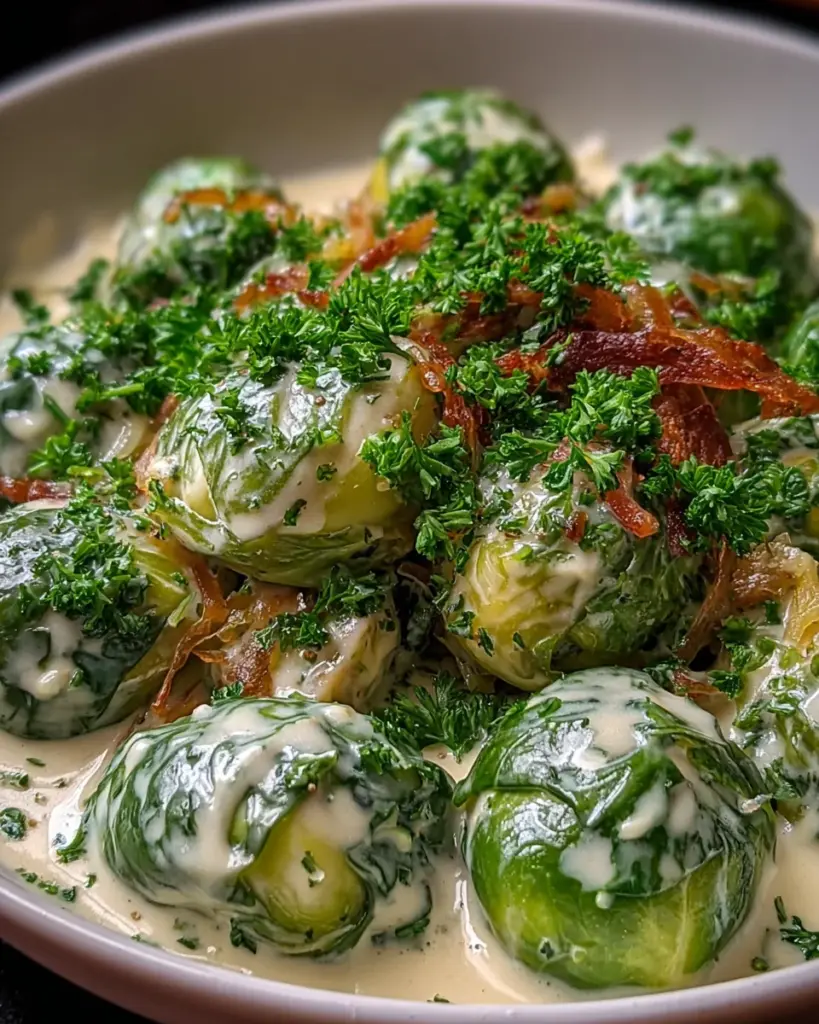 A delightful creamy sauce made with Brussels sprouts, perfect as a side dish.