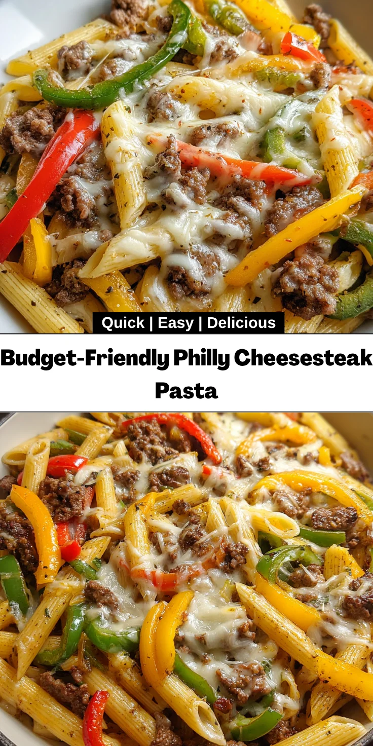 A delicious and budget-friendly twist on the classic Philly cheesesteak, combined with pasta for a hearty meal.