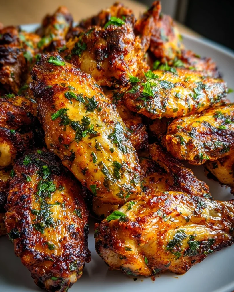 Once your wings are done roasting, transfer them to a large bowl. Pour the garlic butter over the hot wings. Toss everything together until the wings are evenly coated in that buttery, garlicky goodness. If you’re feeling fancy, sprinkle some chopped parsley over the top for both color and a hint of freshness before serving. Enjoy!