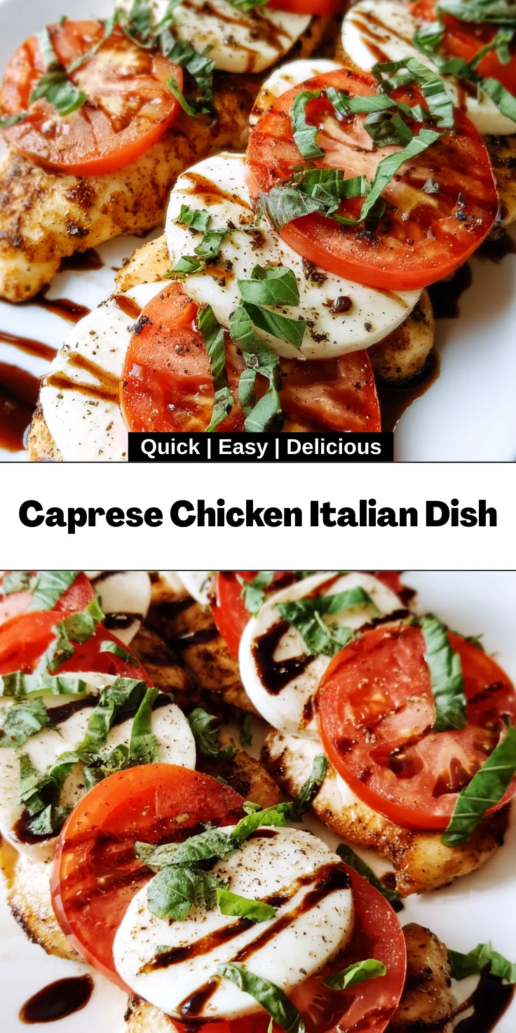 Caprese Chicken is a delightful Italian dish featuring seared chicken breasts topped with fresh tomatoes, mozzarella, basil, and drizzled with balsamic glaze.