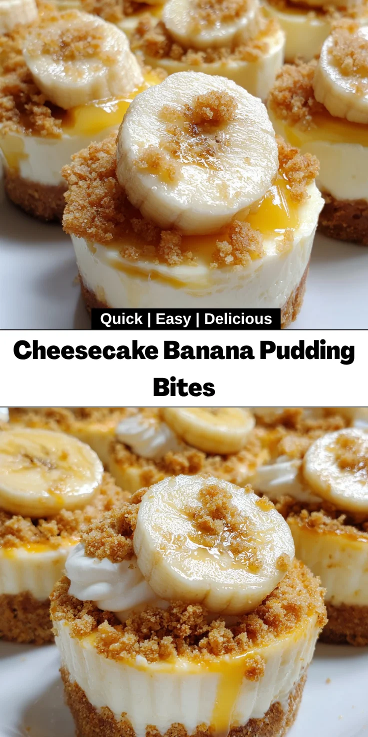 Delicious bite-sized desserts that combine cheesecake and banana pudding for a delightful treat.