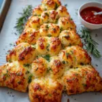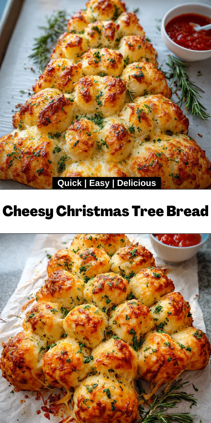 A festive and cheesy bread shaped like a Christmas tree, perfect for holiday gatherings.