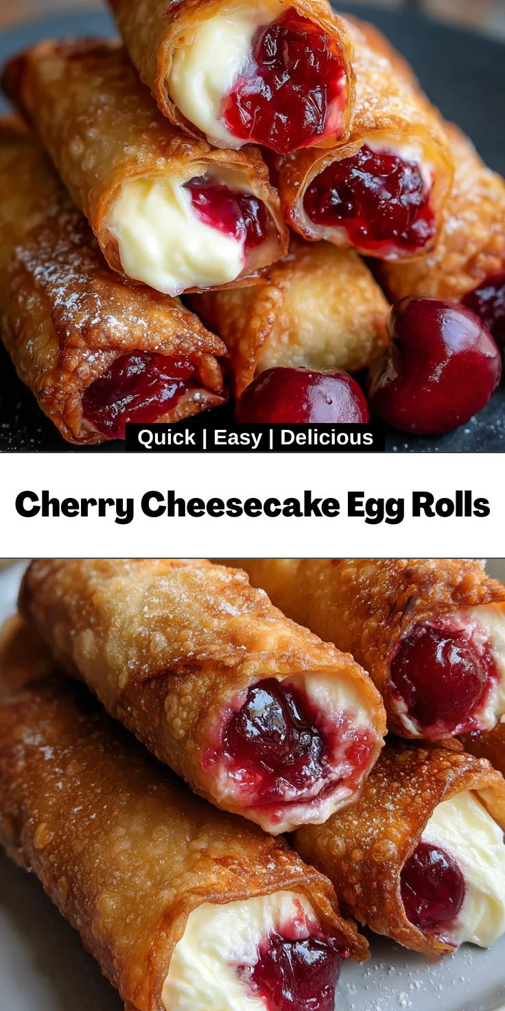 These Cherry Cheesecake Egg Rolls are an absolute game changer for any busy mom or professional! First off, they’re super easy to make, with simple ingredients you probably have on hand. In just 30 minutes, you can whip up this indulgent dessert that tastes like it took hours. Plus, the crunchy exterior paired with the creamy filling and sweet cherries is a flavor explosion that’s hard to resist. Trust me, you’ll love every bite!