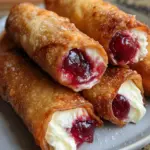 Cherry Cheesecake Egg Rolls are a delicious fusion of cheesecake and cherry pie filling, encased in a crispy egg roll wrapper.