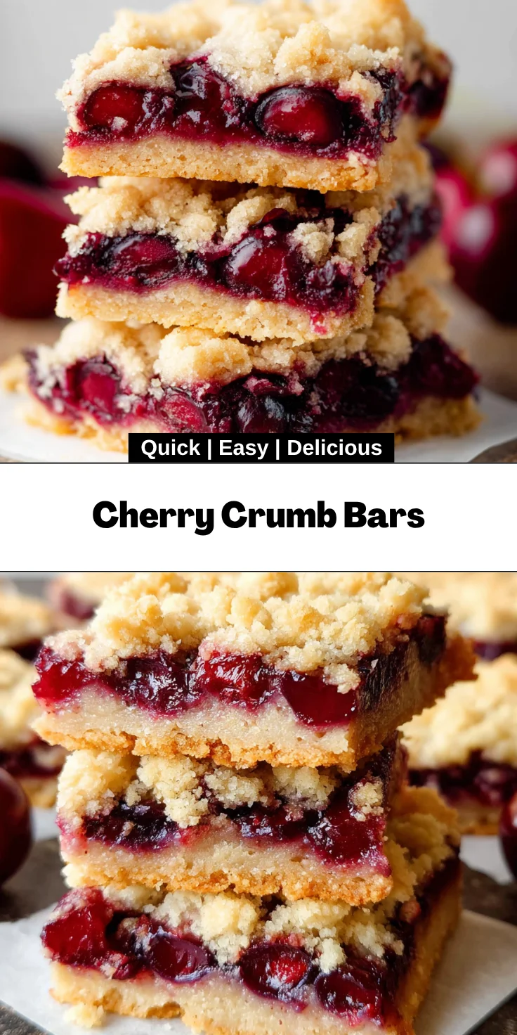As we wrap up our journey through these delightful Cherry Crumb Bars, I can’t help but feel a sense of joy. This recipe is not just about baking; it’s about creating sweet memories in your kitchen. The aroma of baked cherries mingling with buttery shortbread will fill your home with warmth and happiness. Whether you’re sharing them at a family gathering or enjoying a quiet moment with coffee, these bars deliver joy in every bite. Trust me, you and your loved ones will fall head over heels for this recipe. So, grab those cherries and let the baking adventure begin!