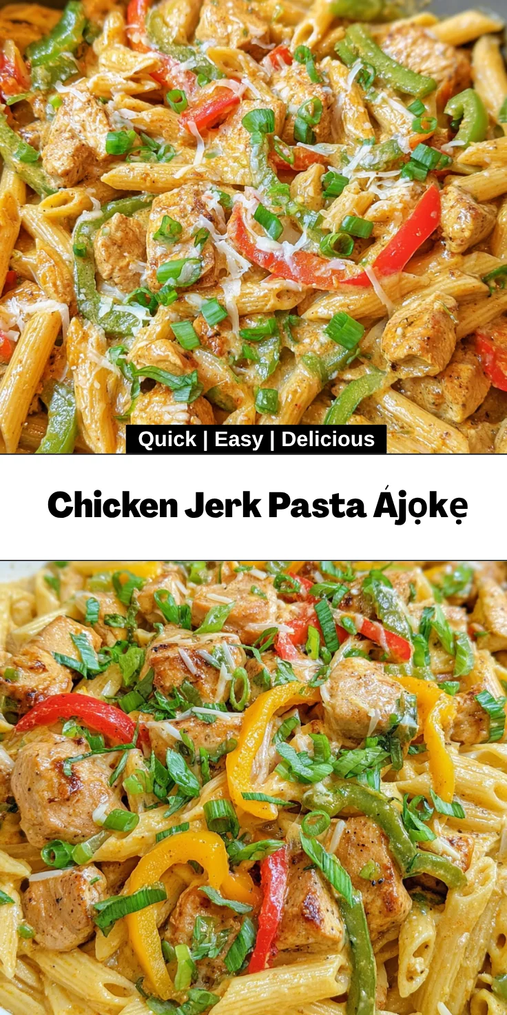 A creamy and flavorful chicken pasta dish infused with jerk seasoning and colorful vegetables.