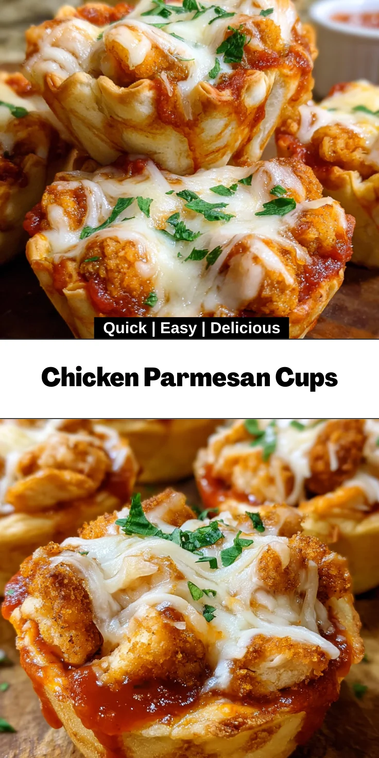 Delicious Chicken Parmesan Cups made with crescent roll dough, mozzarella cheese, and fried chicken tenders, perfect for a quick meal or appetizer.