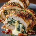 Chicken Spinach Cheese Rollatini is a delicious dish that features rolled chicken breast stuffed with a creamy spinach and cheese filling, coated with breadcrumbs, and baked to perfection.