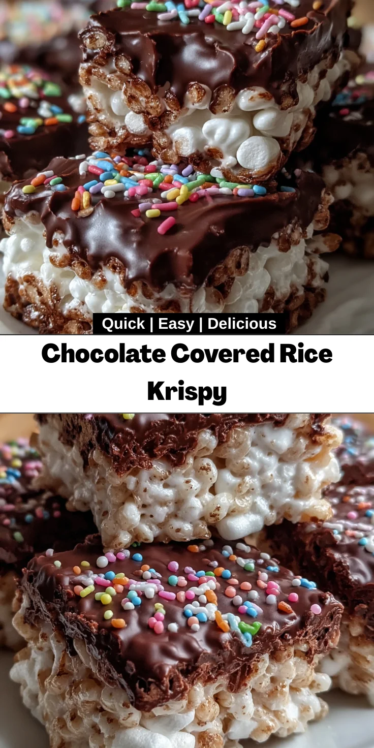 Making Chocolate Covered Rice Krispy treats brings back fond memories of childhood, wrapped in the warmth of family kitchens. This recipe is not just about satisfying a sweet tooth; it’s about creating simple, joyful moments with loved ones. Whether you’re preparing them for a school event or a cozy night in, each bite is a delightful blend of crunch and chocolatey goodness. So, roll up your sleeves, gather your ingredients, and embark on this delicious adventure. As you share these treats, you’ll spread smiles and laughter, making every moment spent together a little sweeter!