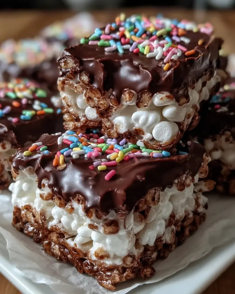 Whether you’re racing against the clock after school pick-up or searching for a sweet surprise to brighten someone’s day, these treats have got you covered. They combine the nostalgia of classic Rice Krispy treats with a rich layer of chocolate, making them a hit with both kids and adults alike. Let’s dive into this easy-to-make indulgence!