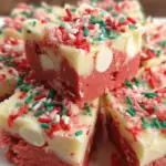 A delightful and festive fudge treat featuring the flavors of red velvet and white cake, perfect for holiday gatherings.
