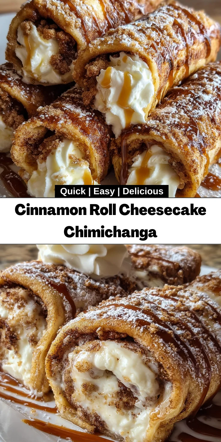 Making Cinnamon Roll Cheesecake Chimichangas isn’t just about baking; it’s about creating joyful moments in the kitchen. The blend of warm, sweet cinnamon rolls wrapped around creamy cheesecake offers a delightful burst of flavors with every bite. I love how simple steps can lead to such a fabulous dessert, perfect for a family gathering or a cozy evening at home. Sharing these treats with my loved ones feels like giving them a hug with each delicious chimichanga. So, roll up your sleeves, get your family involved, and enjoy a sweet adventure that brings everyone together!