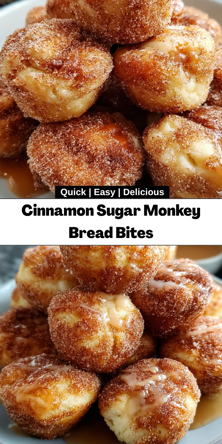 Cinnamon Sugar Monkey Bread Bites are soft, buttery dough balls coated in cinnamon sugar and drizzled with a sweet glaze, making them an irresistibly easy and delicious treat.