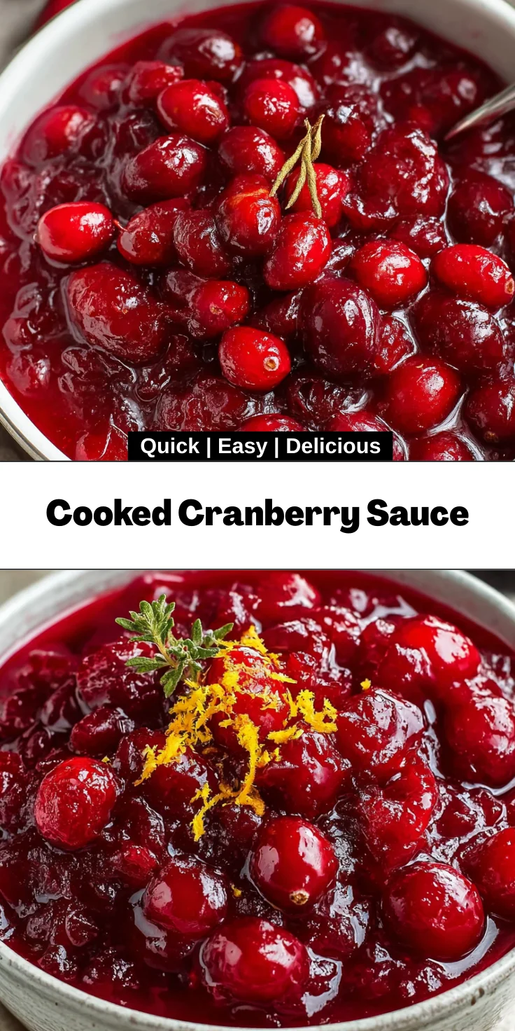 A delicious, sweet, and tangy cooked cranberry sauce that is perfect for holiday meals or any time you want to add a burst of flavor to your dishes.