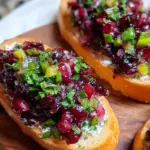 A festive and flavorful appetizer featuring a delicious cranberry jalapeño tapenade atop crispy crostini, perfect for parties.