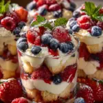 Next, grab your creamy mascarpone mixture again. Spoon a generous dollop over the berries. It should create a lovely contrast with the fresh fruit below. Don’t be shy; this layer is what makes this dessert so rich and satisfying!