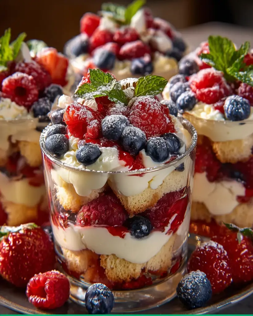 - When serving, place the cups on a festive platter, sprinkled with extra berries and mint leaves for an eye-catching display.