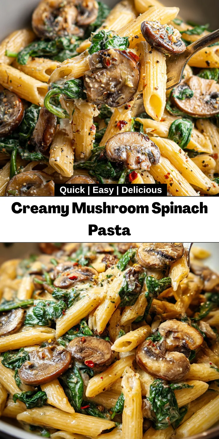 This Creamy Mushroom Spinach Pasta is more than just a meal; it’s an experience wrapped in warmth and flavor. It brings together simple ingredients to create a dish that’s both comforting and satisfying. Whether it’s a busy weeknight or a special gathering, this recipe effortlessly rises to the occasion. Watching my family savor each bite fills me with joy, knowing that I’ve prepared something delightful. So gather your loved ones, serve this flavorful dish, and enjoy the smiles that follow. Trust me, it’s a recipe worth sharing and loving!