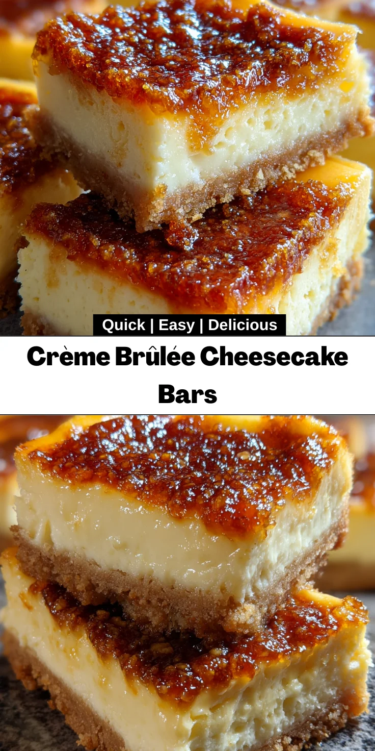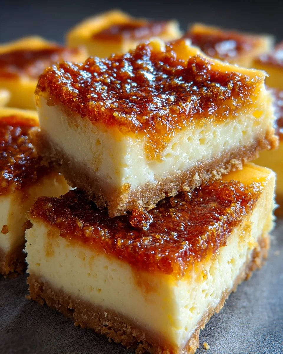 Indulge in the delightful flavor of Crème Brûlée Cheesecake Bars, a delicious dessert that combines the classic taste of crème brûlée with creamy cheesecake.