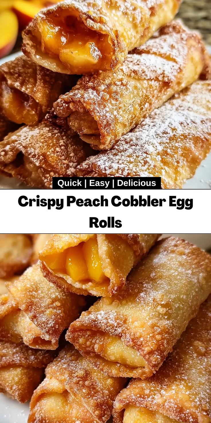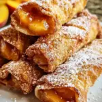 Crispy Peach Cobbler Egg Rolls are a delightful dessert that combines the flavors of peach cobbler with the crunchy texture of egg rolls.