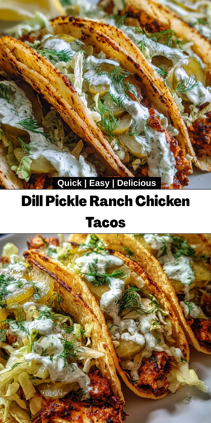 As someone who loves to cook, I know how hectic life can get. Between juggling family schedules and work commitments, finding time to whip up a delicious meal can be a struggle. That’s where my Dill Pickle Ranch Chicken Tacos come in! These tacos offer a fun twist on your traditional favorites, bursting with flavors and textures that will please everyone at the table. They’re quick to prepare, making them a perfect weeknight meal or a delightful dish to impress your loved ones during a gathering. Trust me; you’ll want to make these tacos your go-to recipe!