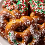 Festive Pretzel Christmas Cookies are a delightful treat that combines the sweetness of cookies with the fun shape of pretzels, decorated with melted chocolate and festive sprinkles.