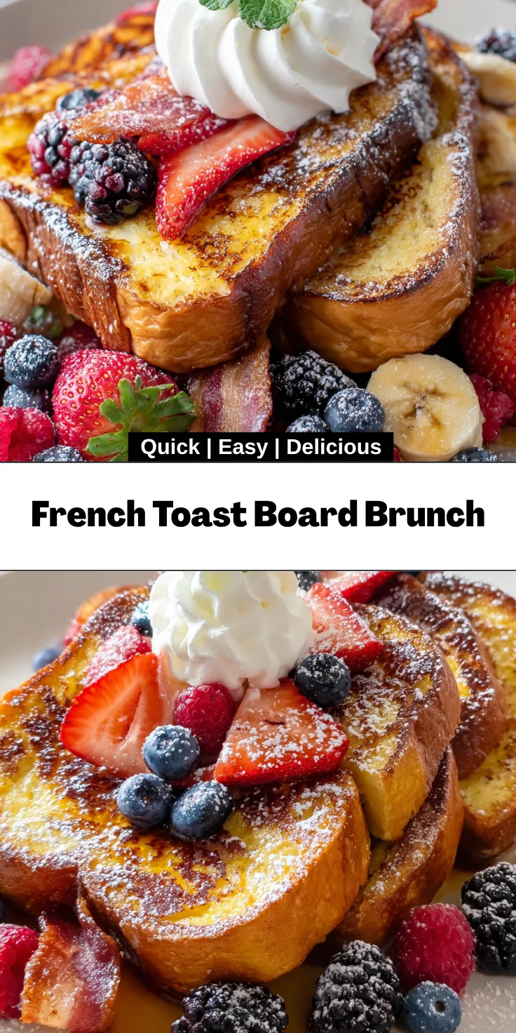 Creating a French Toast Board Brunch is more than just preparing a meal; it’s about cherishing moments with loved ones. The joy of sharing fluffy slices of French toast, surrounded by vibrant toppings, invites laughter and conversation to your table. Each bite holds the delightful flavors of childhood breakfasts and cozy gatherings. As you watch everyone customize their plates, you’ll feel a sense of accomplishment and happiness. This recipe is a simple yet profound way to create memories that linger long after the plates are cleared. So gather your family and friends, and enjoy this beautiful brunch experience together!