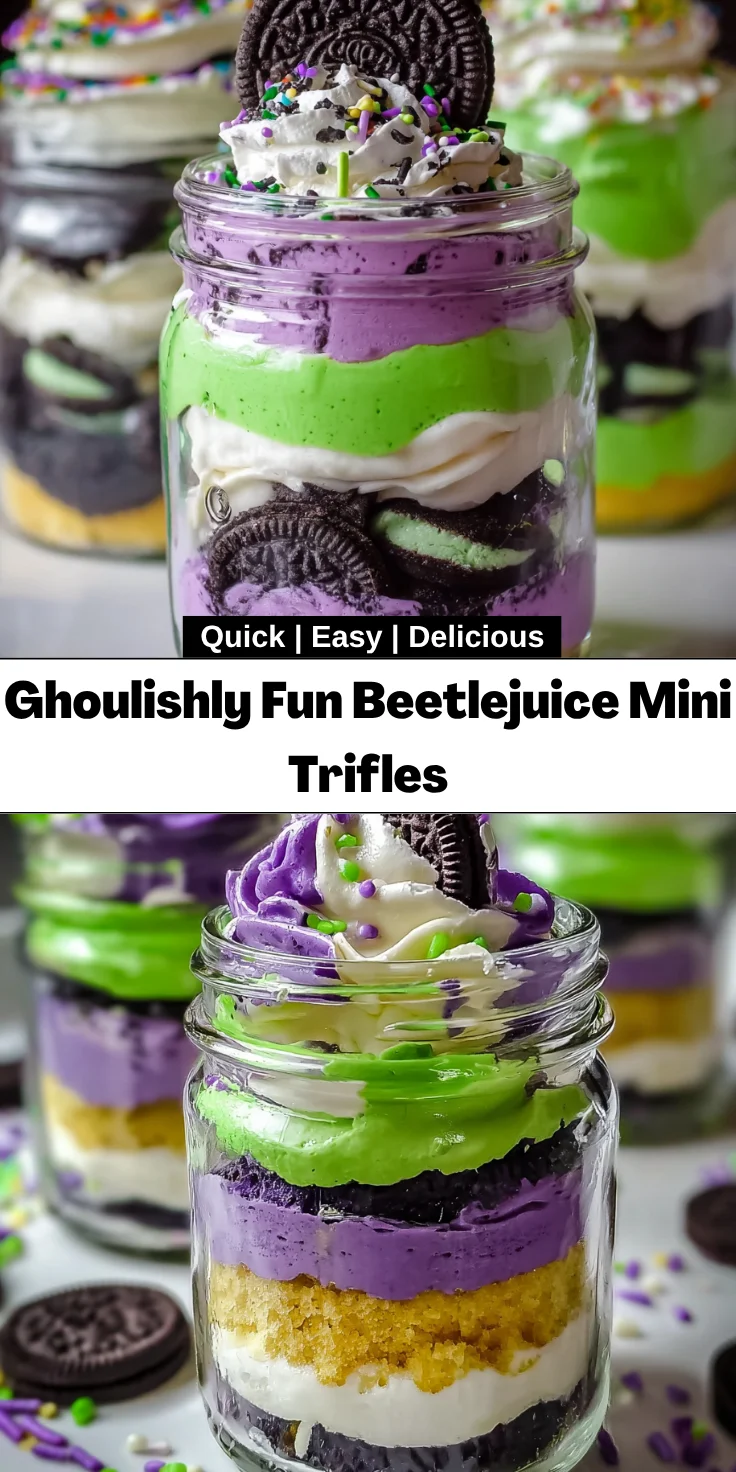 These Ghoulishly Fun Beetlejuice Mini Trifles are a delightful and festive dessert perfect for Halloween or any fun gathering.