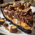 - Optionally, decorate with mini Reese’s cups, chopped peanuts, chocolate or peanut butter drizzle, or sea salt flakes before serving.