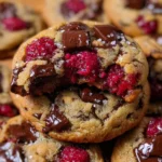 Deliciously gooey cookies filled with fresh raspberries and rich dark chocolate chunks.