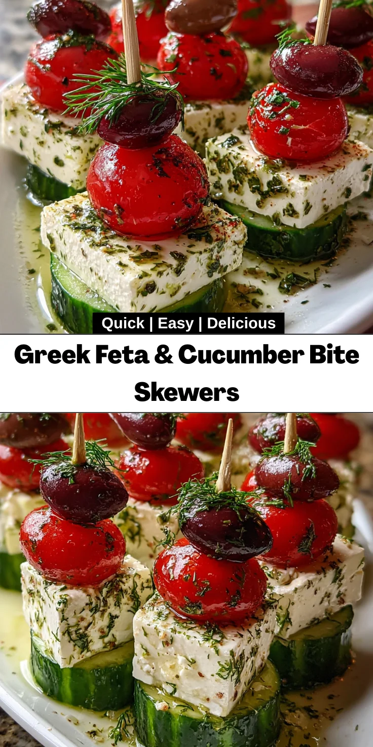 Creating these Greek Feta & Cucumber Bite Skewers is like hosting an enchanting little party on a platter! The joy of watching friends and family gather around, their faces lighting up with delight as they take that first bite, is priceless. Each skewer is a burst of flavor and texture, bringing a taste of the Mediterranean right into your home. Plus, the quick prep makes it a lifesaver for busy days. I can’t wait for you to experience the smiles they bring—it’s pure magic! Cheers to easy entertaining and delicious moments!