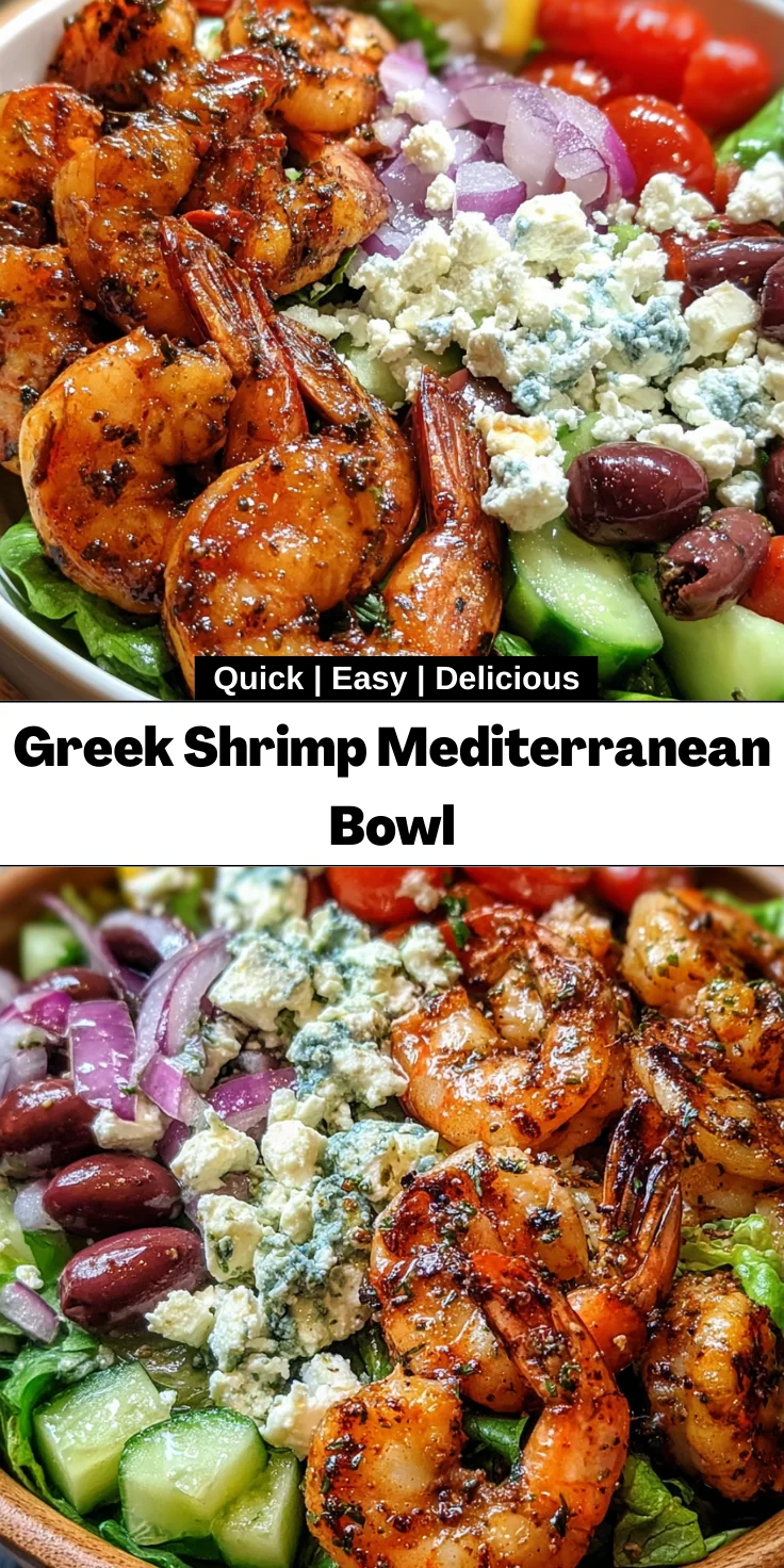 A delicious and vibrant Greek Shrimp Mediterranean Bowl that combines grilled shrimp with a fresh salad and a zesty lemon olive oil dressing.