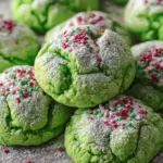 These vibrant green Grinch Cookies are a festive treat perfect for the holiday season, featuring a soft and chewy texture adorned with candy heart sprinkles.