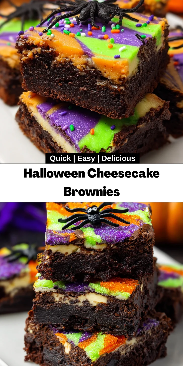 Delicious brownies layered with a creamy cheesecake filling that are perfect for Halloween!