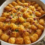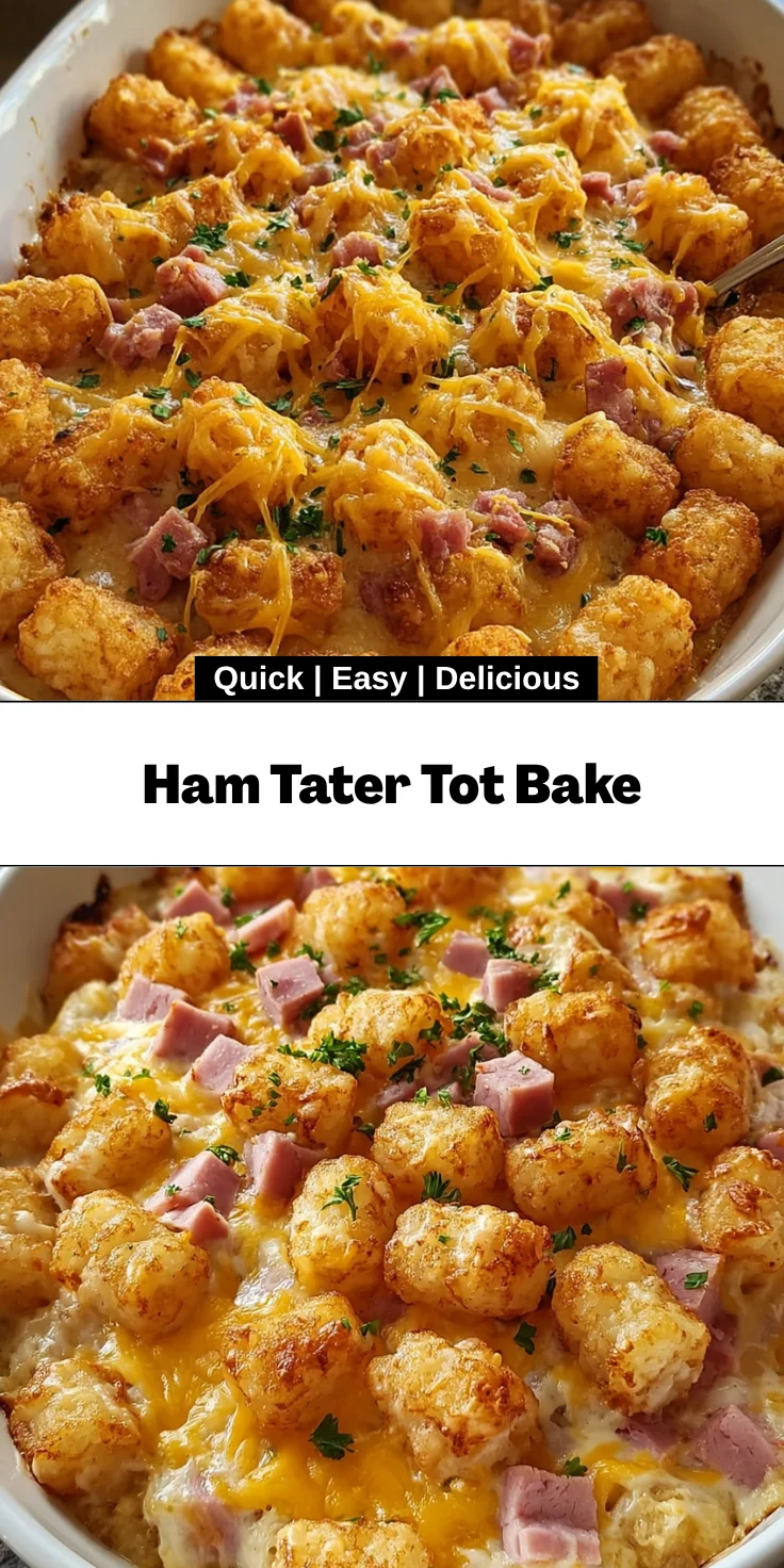 A delicious and comforting Ham Tater Tot Bake that combines creamy ingredients with crispy tater tots and savory ham.